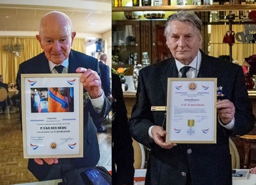 Tot zijn grote verrassing ontving de secretaris/vicevoorzitter van de afdeling Wapenbroeders Weert tijdens de kerst-saamhorigheidsbijeenkomst van 16 december 2025 jl. uit handen van de voorzitter van de landelijke Koninklijke Bond van Wapenbroeders, Klaas Orsel, de Bondsmedaille van de Bond van Wapenbroeders. Deze onderscheiding werd uitgereikt als waardering voor zijn grote inzet en betrokkenheid bij de Bond. Daarnaast ontving de voorzitter van de afdeling Weert, Peter van de Berg, een certificaat ter gelegenheid van zijn 35-jarig lidmaatschap en zijn jarenlange voorzitterschap van de afdeling.